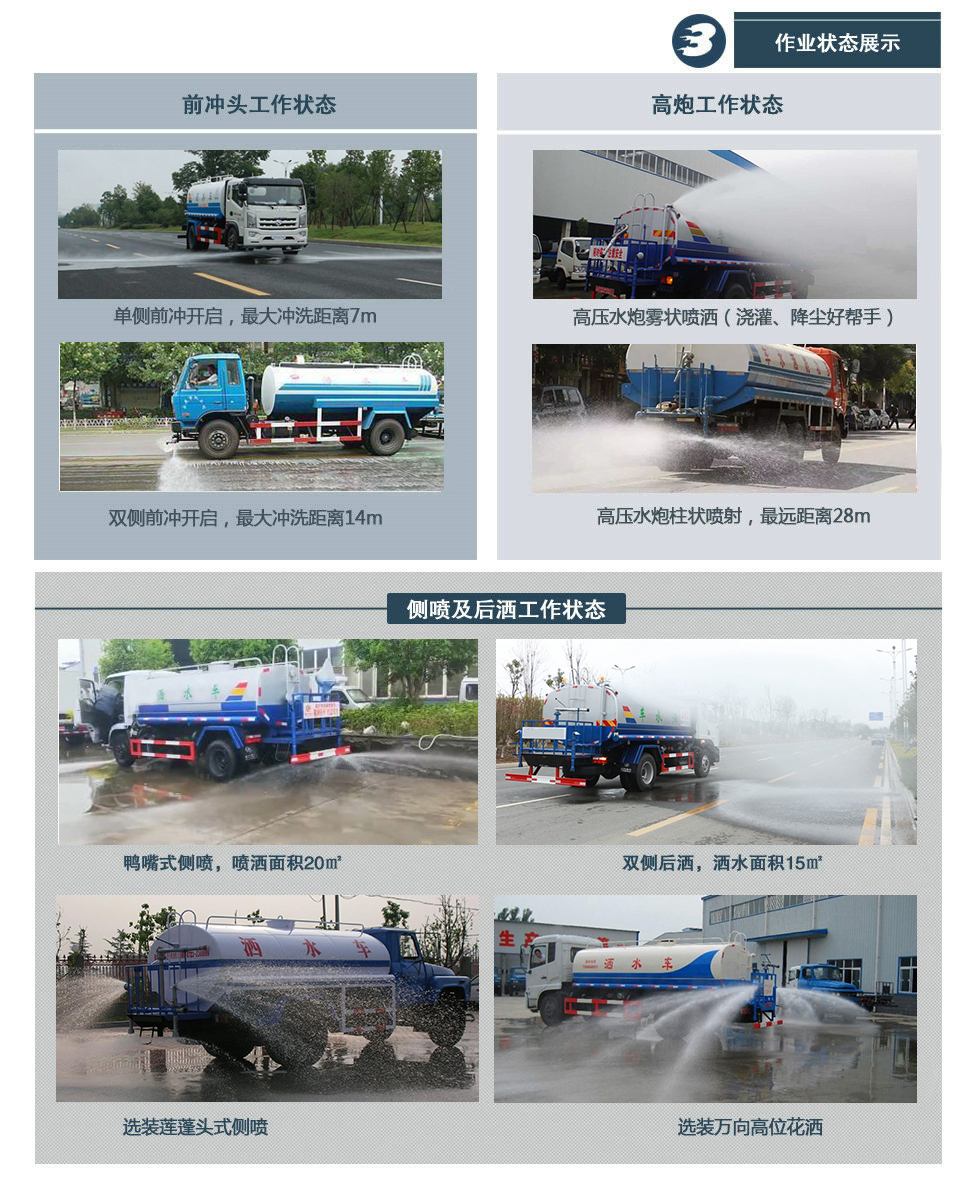 標(biāo)準(zhǔn): 泵性能符合機(jī)械部標(biāo)準(zhǔn)《灑水車技術(shù)條件》QC/T29114-93中對(duì)泵規(guī)定的要求。沖水距離在20米以上,楊程30米以上,每分鐘1000轉(zhuǎn),自吸高度6米。