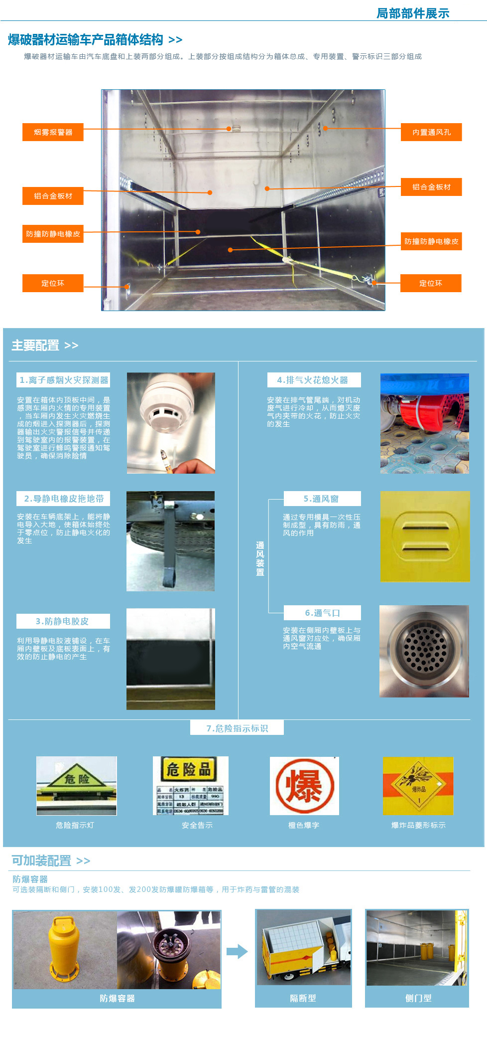 車廂頂部封閉,不可開啟。選裝右側(cè)箱體不開門,。運(yùn)輸介質(zhì)品名:黑火藥,壓縮黑火藥,電引爆雷管,爆破炸藥,點(diǎn)燃導(dǎo)火索,專用煙火制品。運(yùn)輸介質(zhì)類項(xiàng)號(hào):1.1D,1.1D,1.1B,1.1D,1.4G,1.1G。防護(hù)材料:Q235A碳鋼,連接方式:左右側(cè)面防護(hù)采用螺栓連接,后下部防護(hù)采用焊接連接,后部防護(hù)斷面尺寸(mm):100?0,后部防護(hù)離地高度(mm):420。安裝限速裝置,限速80km/h。該車安裝帶有衛(wèi)星定位功能的行駛記錄儀。僅采用前盤制動(dòng)器和安裝ABS以及前置消聲器的底盤。采用子午線輪胎。ABS廠家:威伯科汽車控制系統(tǒng)(中國)有限公司,ABS型號(hào)44600XXXX0。