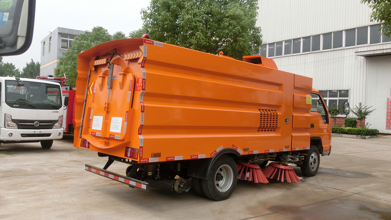 產(chǎn)品功能特點(diǎn)1、采用吸掃結(jié)合的方式收集垃圾,濕式除塵、電液控制,液壓傾翻卸料的作業(yè)方式對路面進(jìn)行清掃作業(yè)。2、采用副發(fā)動機(jī)專門驅(qū)動風(fēng)機(jī)和液壓系統(tǒng),保證行駛過程中能繼續(xù)工作,保證清掃過程的連續(xù)性。 3、采用“中置四盤刷+后置吸嘴”的結(jié)構(gòu)布置,便于清掃裝置與吸嘴的調(diào)整和維護(hù),轉(zhuǎn)場時(shí)整車通過性好。 4、副發(fā)動機(jī)與風(fēng)機(jī)之間的傳動設(shè)置設(shè)有自動離合器,可保證副發(fā)動機(jī)空載起動和停機(jī)時(shí)與風(fēng)機(jī)的自動脫離,降低對副發(fā)動機(jī)的沖擊,提高了副發(fā)動機(jī)的工作可靠性和使用壽命。 5、掃盤有遇障避讓保護(hù)功能和復(fù)位功能,遇到障礙物后回縮,越過障礙物后復(fù)位。 6、根據(jù)不同清掃工況,在不增加副機(jī)油門的情況下,實(shí)現(xiàn)掃盤高中低三檔調(diào)速,即能保證在各種污染狀況下都有良好的清掃效果,同時(shí)節(jié)省油耗以及刷毛的損耗。 7、采用可隨路面自動找平的全浮動式吸嘴,吸塵效果好,使用壽命長。 8、進(jìn)口液壓閥組,能保證整車的液壓動作的穩(wěn)定性和流暢性。 9、進(jìn)口液壓馬達(dá),能保證掃盤的工作穩(wěn)定性,使用壽命長。 10、進(jìn)口原料制成的外翻式吸塵管,有效防止吸塵管被劃破、凍裂,增加使用壽命。 11、精密無縫冷彎液壓油管,內(nèi)壁無氧化雜質(zhì),保證液壓油路清潔,不堵閥。 12、掃盤刷臂內(nèi)使用高性能工程塑料隔套,耐磨性好,免打黃油免維護(hù),節(jié)省人力物力。 13、不銹鋼水箱、垃圾箱,可抗一般性腐蝕,增加箱體的使用壽命。 14、超寬后門且大于90度的開啟角度,更易于傾倒垃圾,清理垃圾箱。 15、垃圾箱傾翻角度大于48度,易于傾倒垃圾。 16、可加裝前沖、后灑、噴霧、自潔卷盤、作業(yè)監(jiān)控系統(tǒng)、輔助吸管裝置、推雪鏟等。